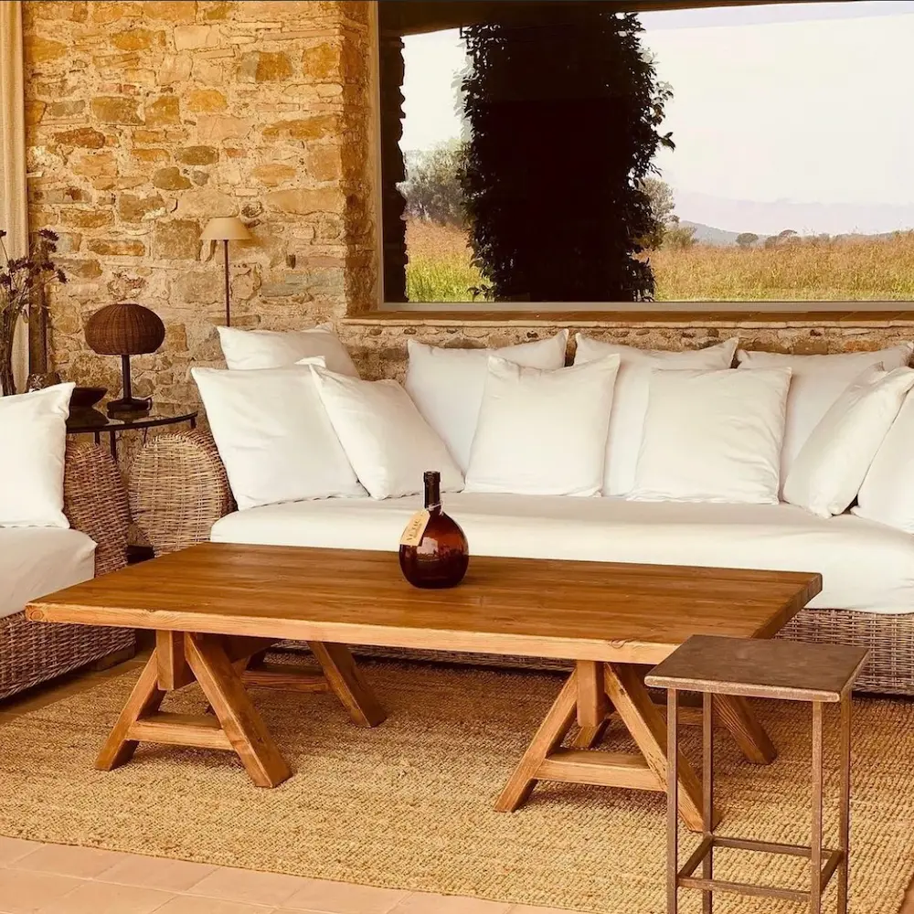 La mesa de centro “Banyoles” es una pieza sobria y versátil, diseñada para realzar tanto interiores modernos como ambientes rústicos.