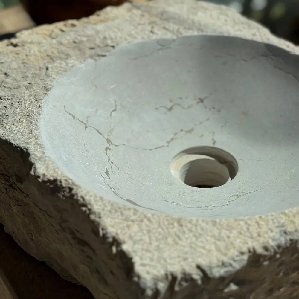 Su tamaño compacto es ideal para baños pequeños o para quienes buscan una pieza con gran personalidad en un espacio reducido. "Bolvir" no pasa desapercibida: cada una es distinta, marcada por la piedra que le da vida, con vetas, texturas y formas propias.