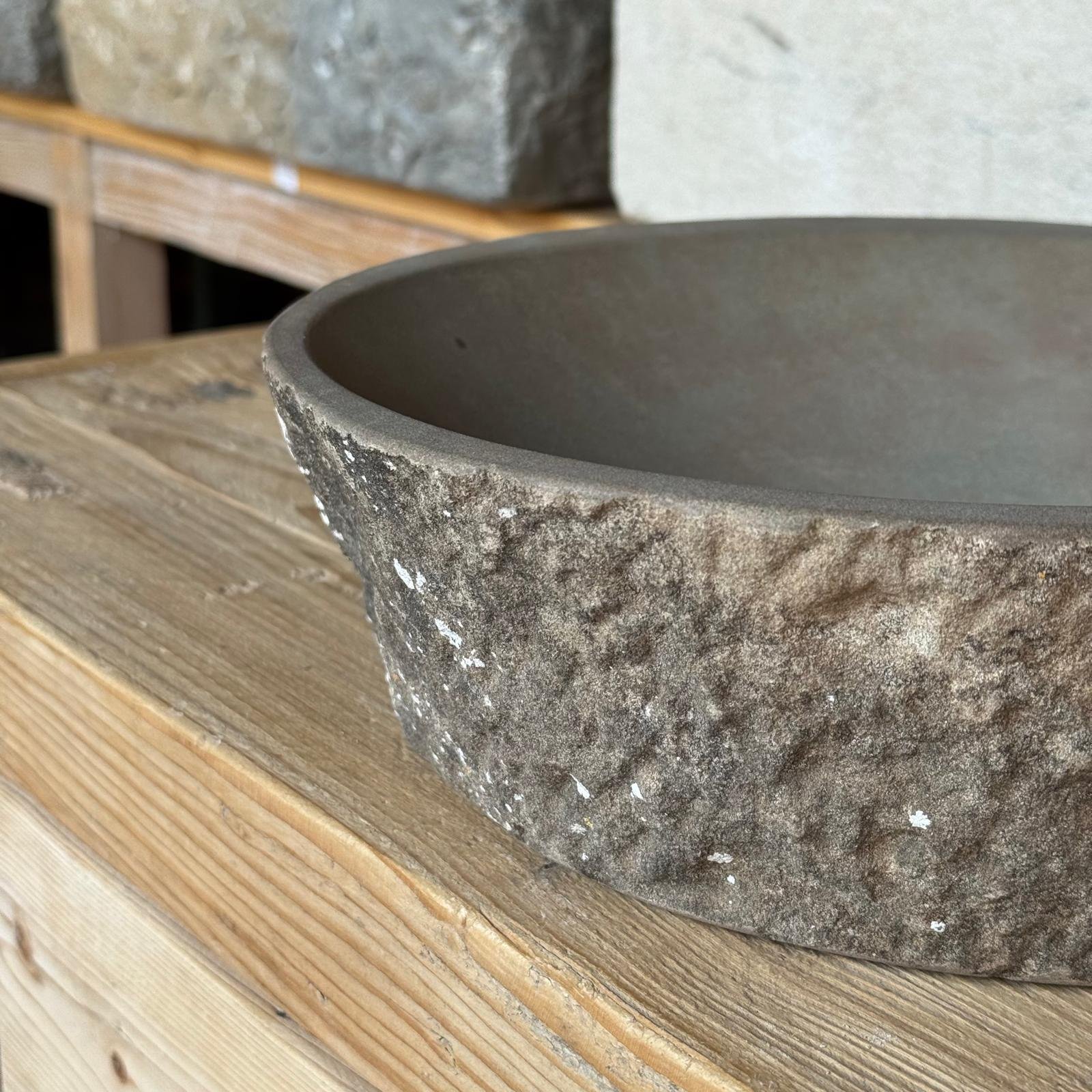 Su exterior rugoso muestra la huella natural del tiempo, mientras que el interior suavemente trabajado aporta practicidad para el día a día. "Fitor" es más que un lavabo: es una pieza cargada de historia, transformada en diseño exclusivo para el hogar.