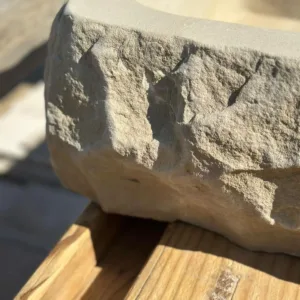 La pica «Garrotxa» destaca por su fuerza natural y aspecto rocoso, como si fuese un fragmento de montaña convertido en lavabo. Tallada a mano en piedra maciza, conserva un exterior en bruto y un interior suavemente pulido que aporta contraste y funcionalidad. Una pieza única que fusiona naturaleza salvaje y diseño artesanal.
