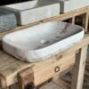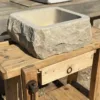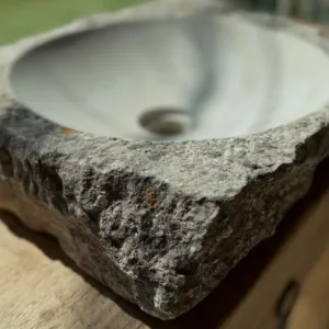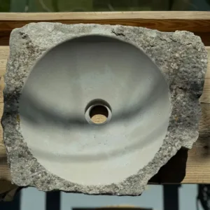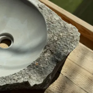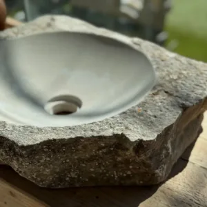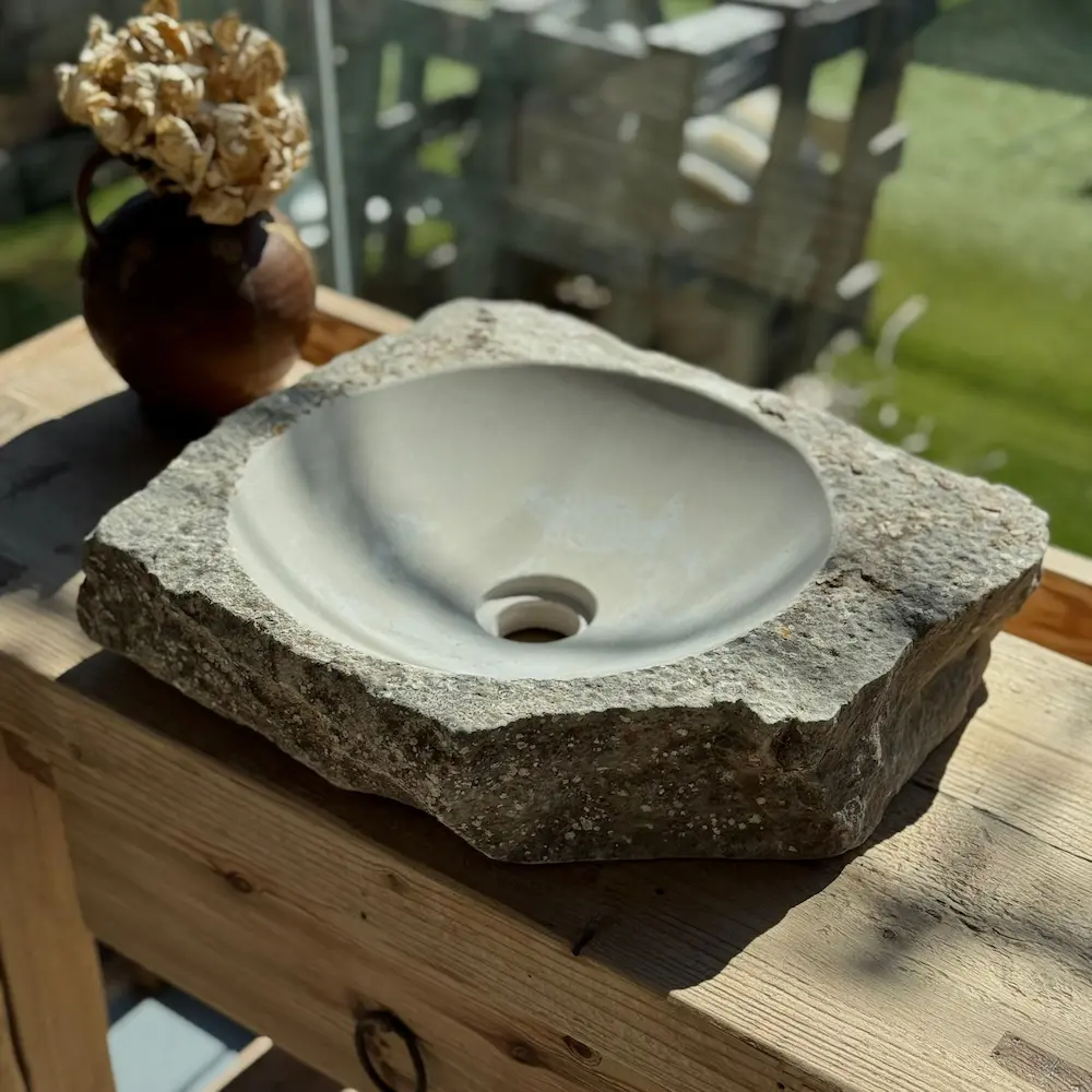 La piedra de Girona aporta una textura visual única, con pequeñas incrustaciones y tonos terrosos que convierten cada unidad en una obra diferente. Su tamaño compacto la hace ideal para aseos pequeños, baños de invitados o rincones especiales donde un toque rústico y artesanal marca la diferencia.