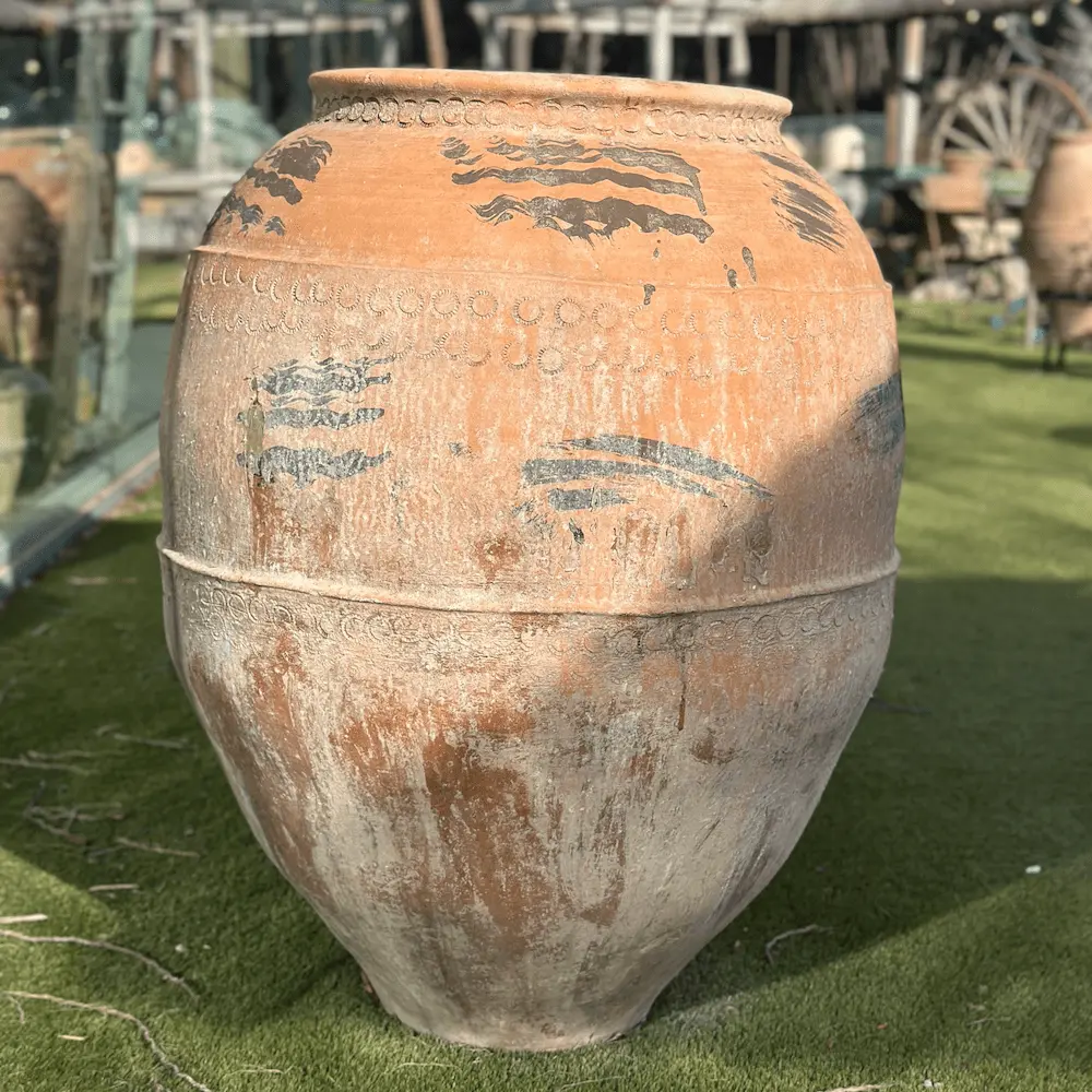 La Tinaja del Valle es una pieza única, recuperada de una masía tradicional del Empordà, que destaca por su autenticidad y su valor histórico. Fabricada en terracota, su diseño robusto y su forma redondeada reflejan el estilo clásico de las tinajas utilizadas en épocas pasadas para almacenar productos como aceite, vino o granos.