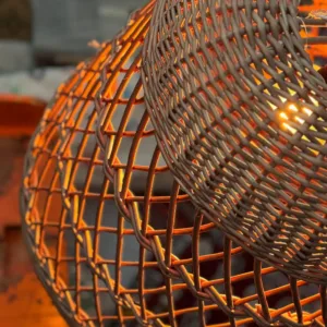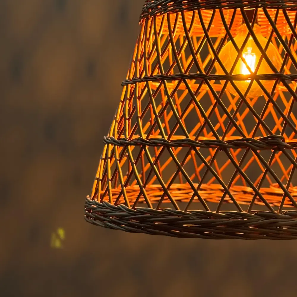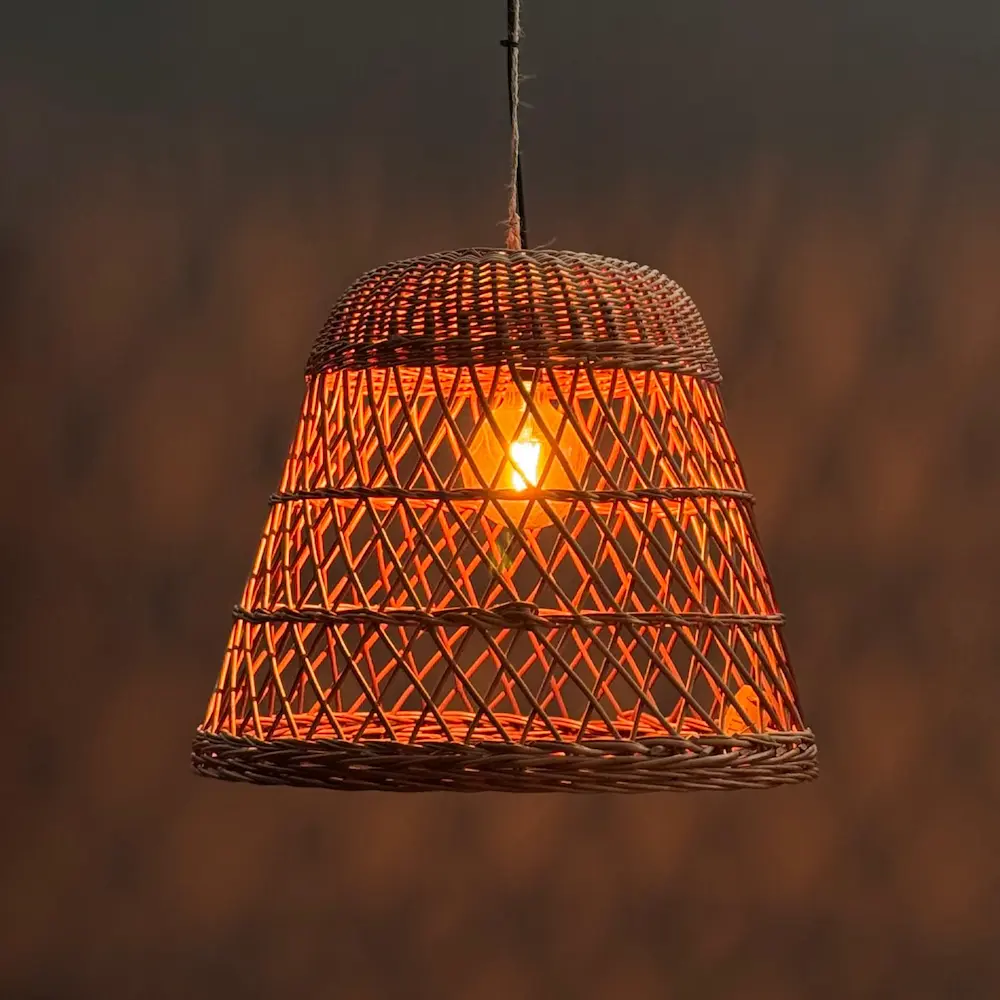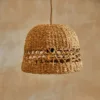 La lámpara “Celistra” destaca por su diseño artesanal y su entramado abierto, que proyecta una luz cálida llena de matices. Su forma de campana y la textura natural de su tejido aportan un encanto mediterráneo ideal para crear ambientes acogedores, relajados y con personalidad.