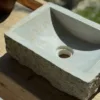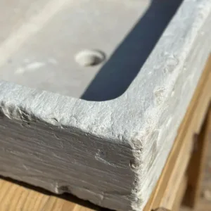La pica «Montsant» está tallada a mano en piedra natural de Tarragona. Su diseño rectangular de bordes rectos y textura exterior rústica refleja autenticidad, mientras que el interior pulido garantiza practicidad y elegancia. Una pieza versátil que encaja en baños de estilo rústico, contemporáneo o mediterráneo.