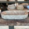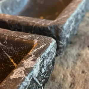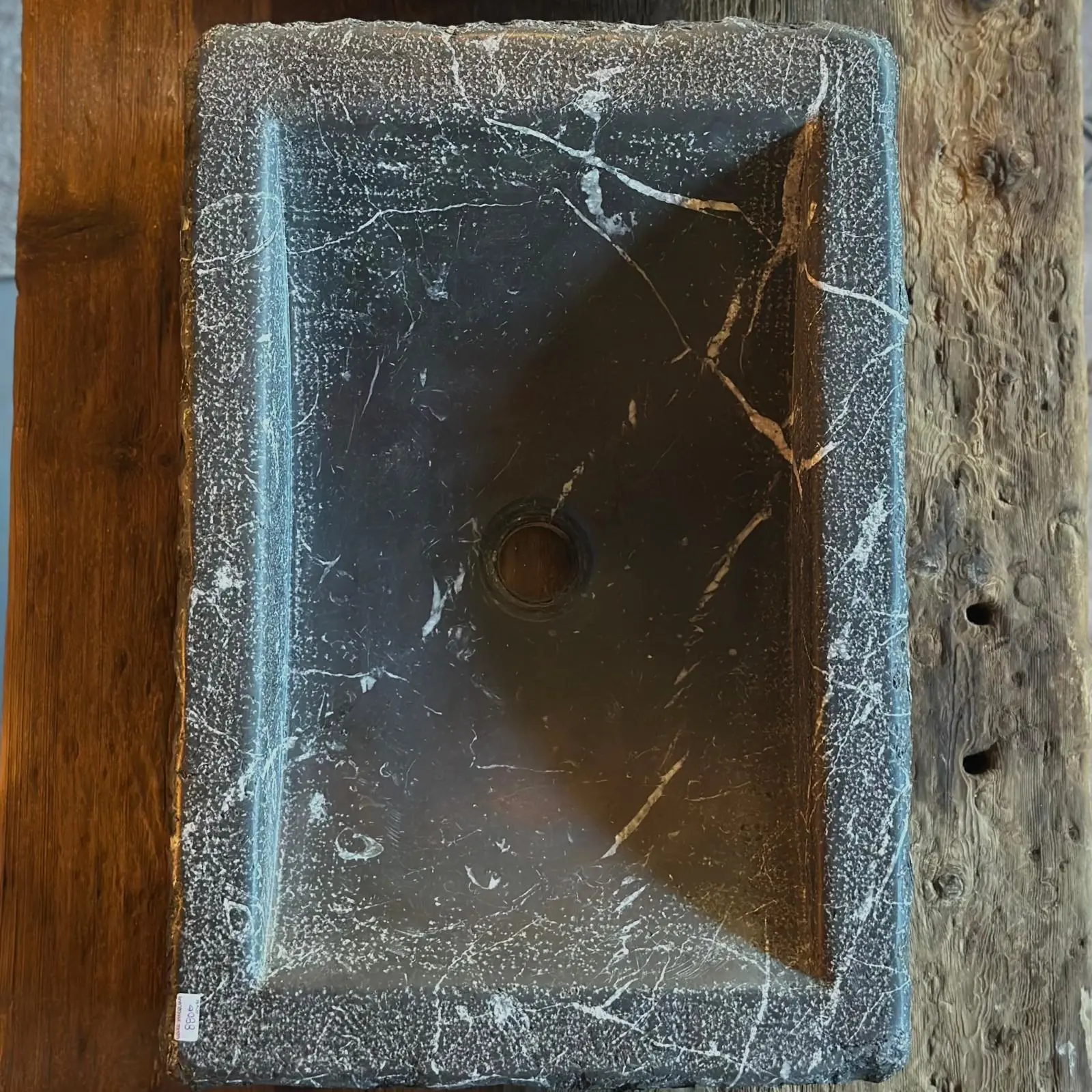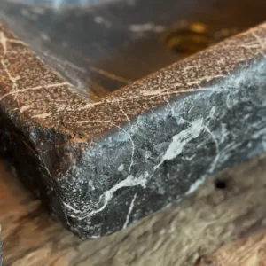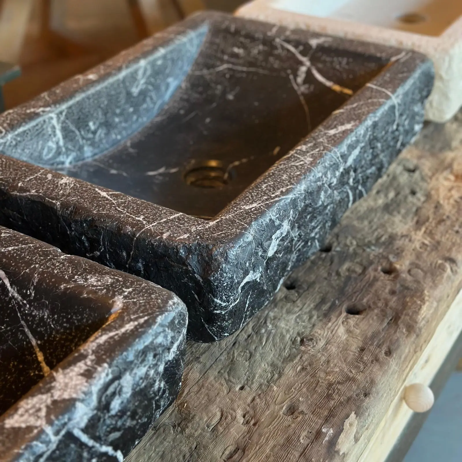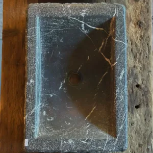 “Obsidiana” explora el contraste entre el negro profundo del Marquina y sus filigranas blancas. El perímetro conserva la textura de cantera, mientras que el interior se talla y pule con un acabado limpio y geométrico que facilita la evacuación del agua y la limpieza diaria. Su presencia sobria combina con muebles de madera, metal o piedra, convirtiéndose en un foco elegante en baños minimalistas o rústicos contemporáneos. Cada pieza es irrepetible: la naturaleza dibuja las vetas y determina el carácter final.