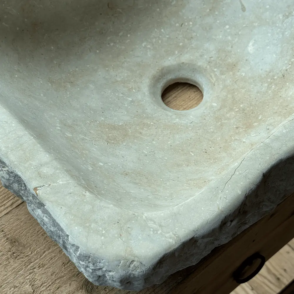 Tallada artesanalmente en piedra del Esquirol, su tonalidad cálida y sus pequeñas imperfecciones naturales reflejan la belleza de lo auténtico. Es ideal para baños de estilo rústico, natural o contemporáneo donde se valore la esencia material.