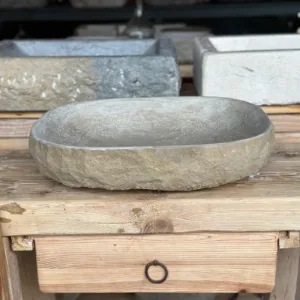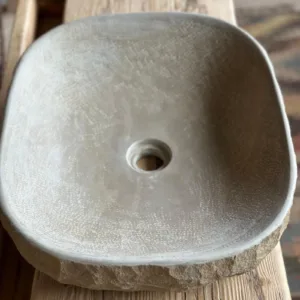 Cada «Pedra Viva» es una pieza única. El exterior mantiene su aspecto rugoso y mineral, mientras que el interior es suave y pulido, creando un equilibrio perfecto entre rusticidad y refinamiento. Este lavabo se integra con elegancia en espacios modernos, rústicos o mediterráneos, aportando una presencia serena y atemporal.