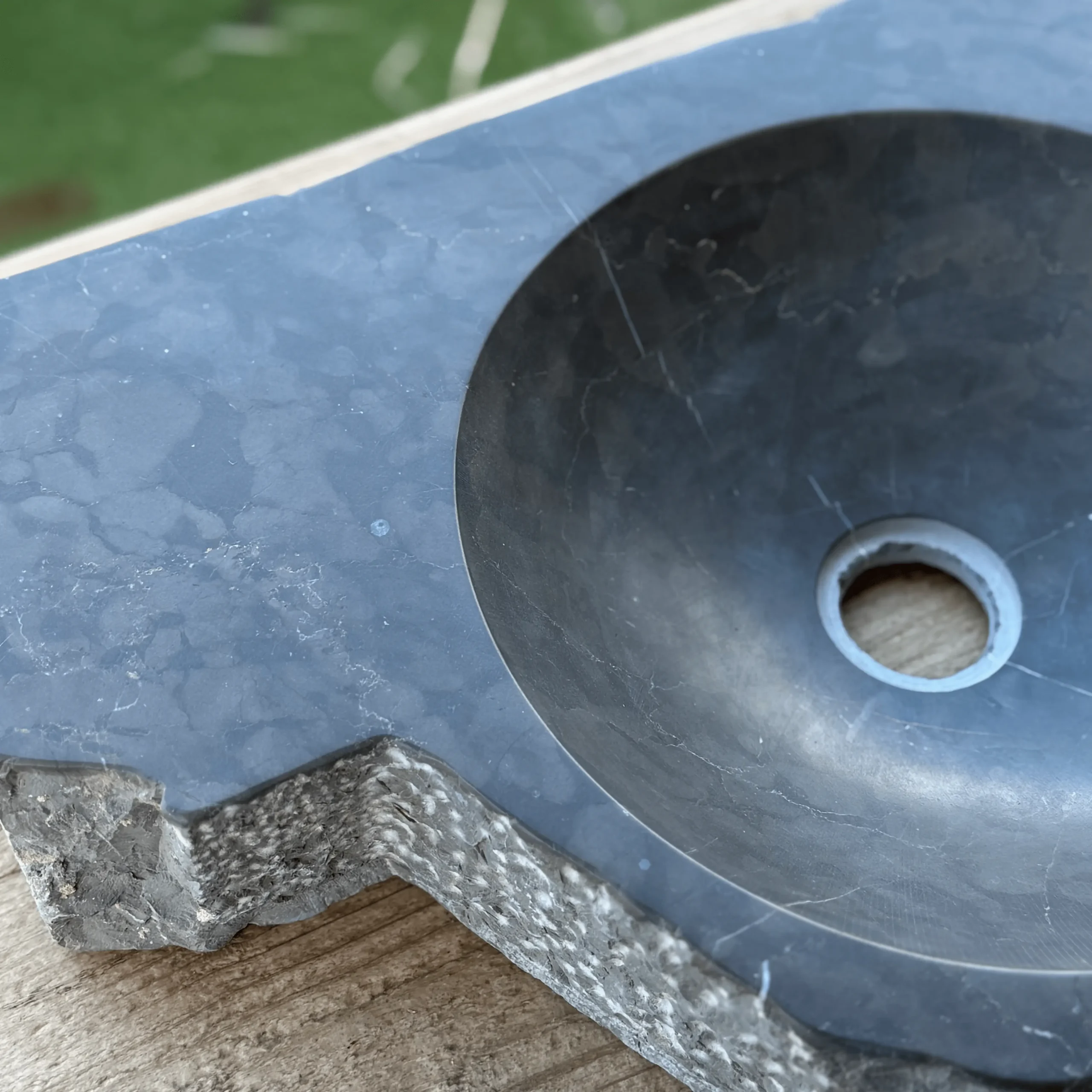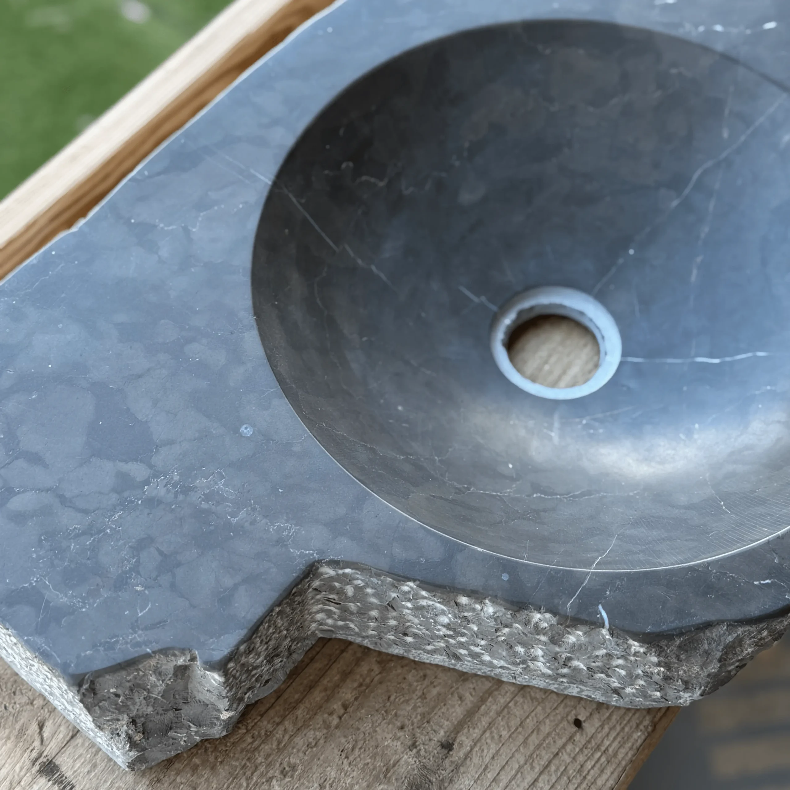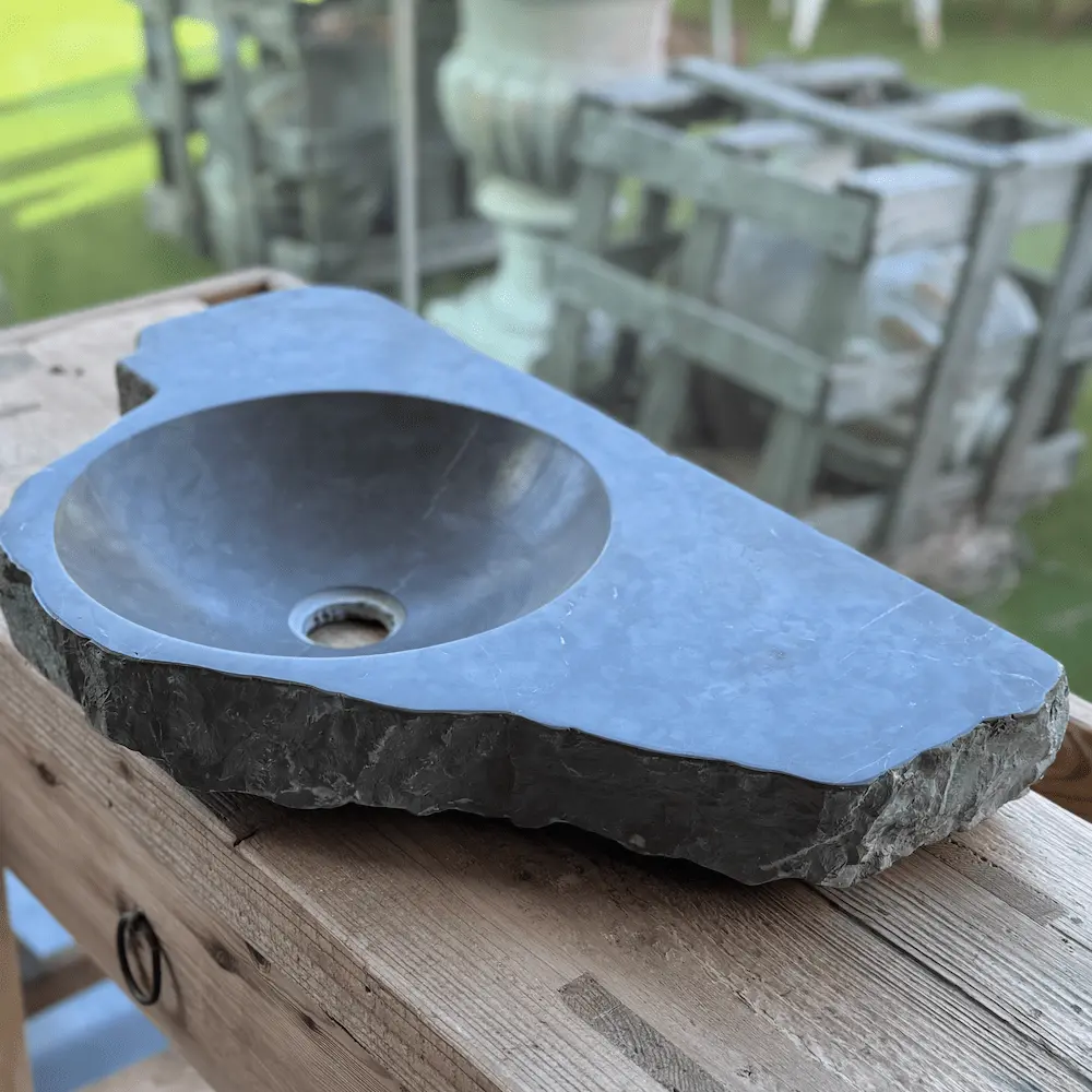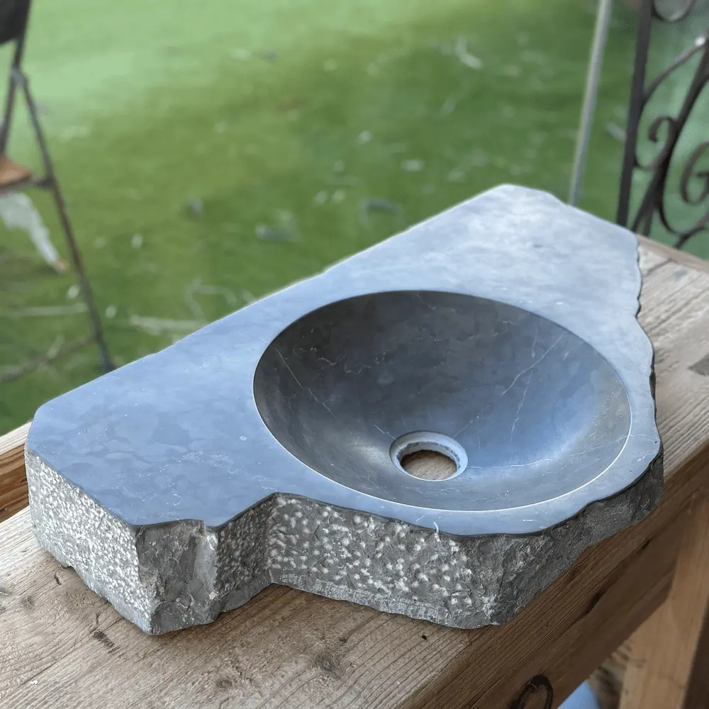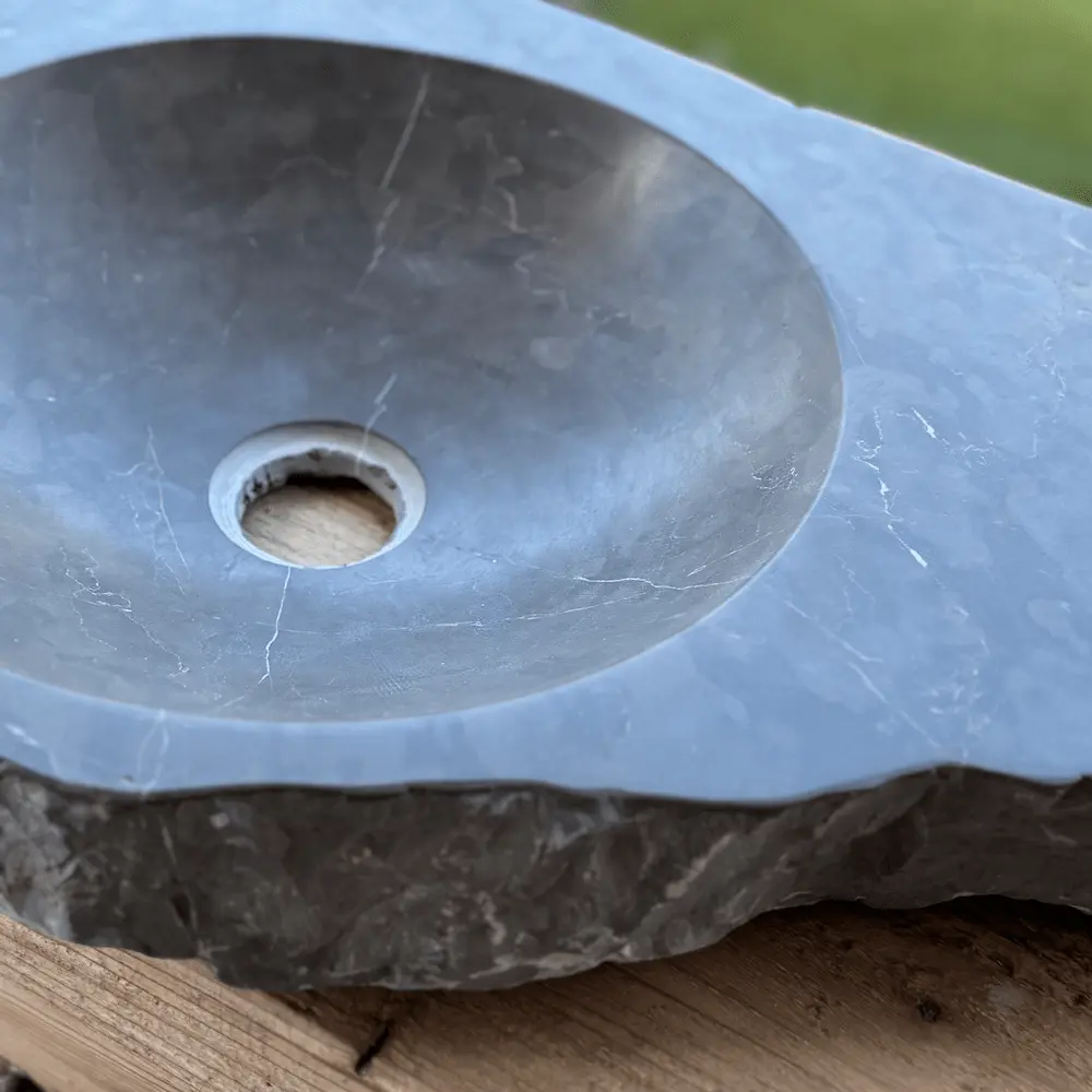 «Roca Village» es una pieza de autor: una pica de piedra natural de mármol con diseño escultórico y asimétrico. Hecha a mano, fusiona arte y funcionalidad en un lavabo único, ideal para espacios modernos con alma rústica.