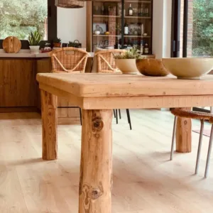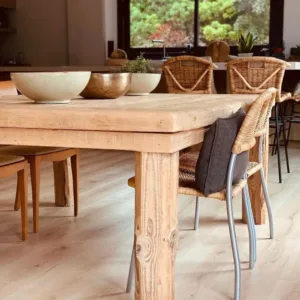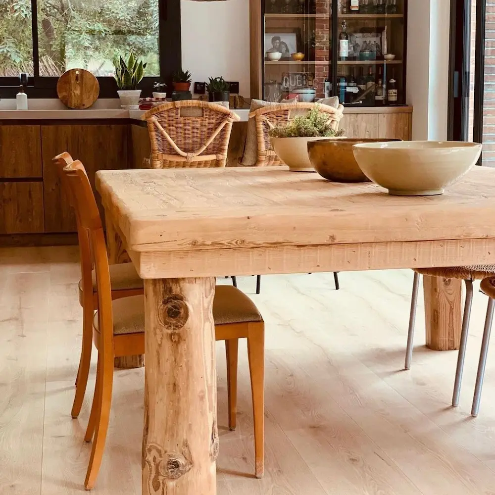 La mesa “Sant Cugat” destaca por su diseño equilibrado y natural, ideal para comedores que buscan un aire rústico con un toque contemporáneo.