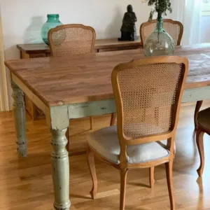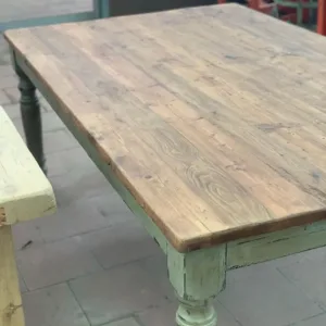 Fabricada de manera artesanal, cada pieza es única: las vetas, marcas y texturas propias del pino recuperado hacen de la “Sant Gervasi” una mesa exclusiva, ideal para comedores que buscan personalidad y autenticidad en su decoración.