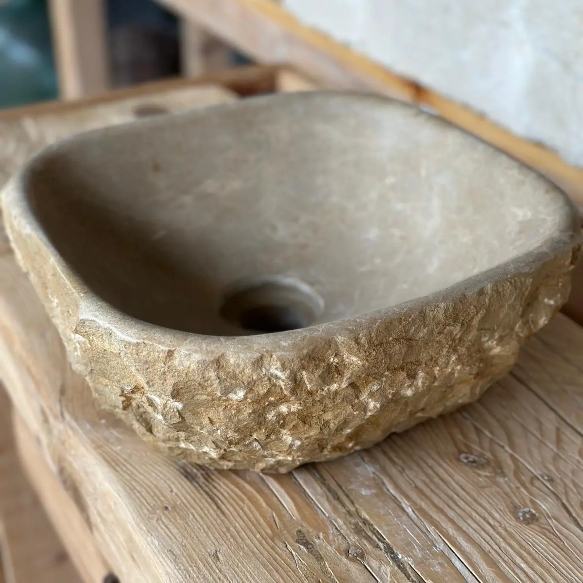 Su tono arena con ligeras vetas beige la convierte en una pieza ideal para baños con estética natural, rústica o mediterránea. "Siena" es una pieza artesanal de presencia atemporal, perfecta para quienes valoran lo hecho a mano y la autenticidad de los materiales nobles.
