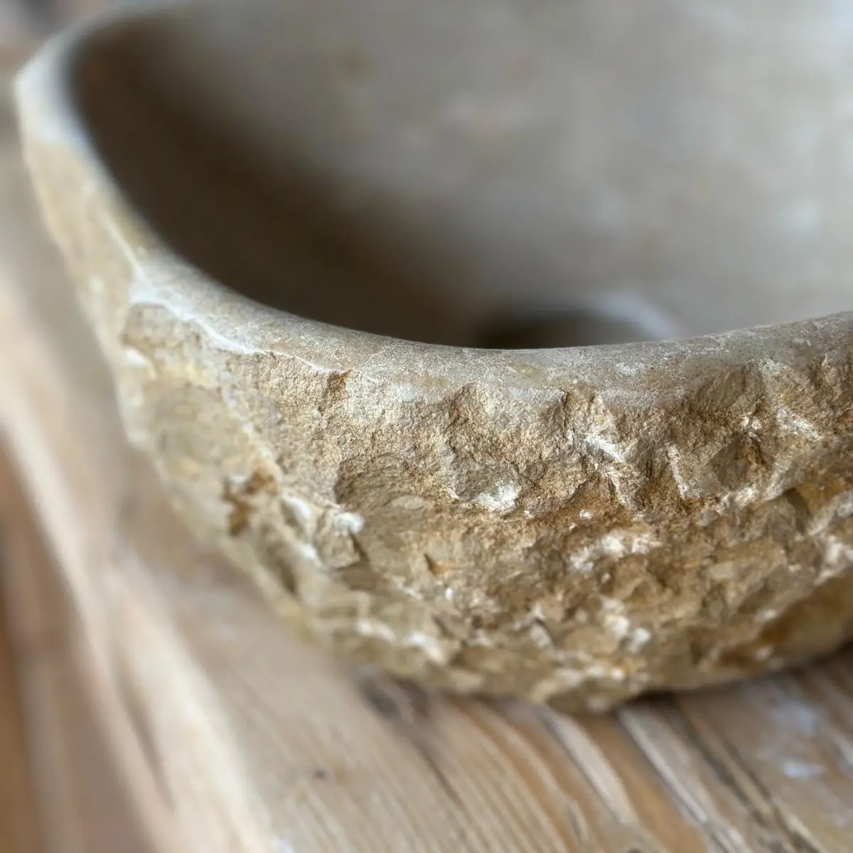 La pica de piedra "Siena" combina la belleza natural de la piedra de Tarragona con un diseño sobrio y contemporáneo. El tallado manual conserva la esencia original de la roca, con un exterior texturizado que aporta carácter y un interior pulido que mejora su funcionalidad.