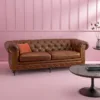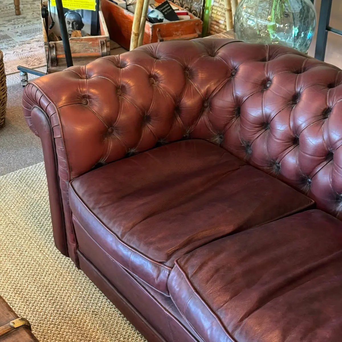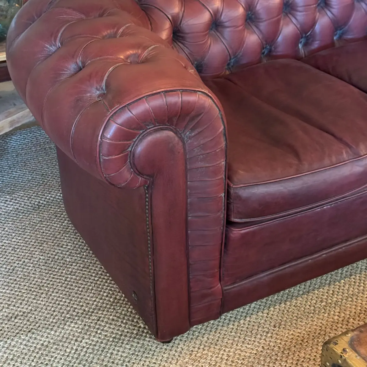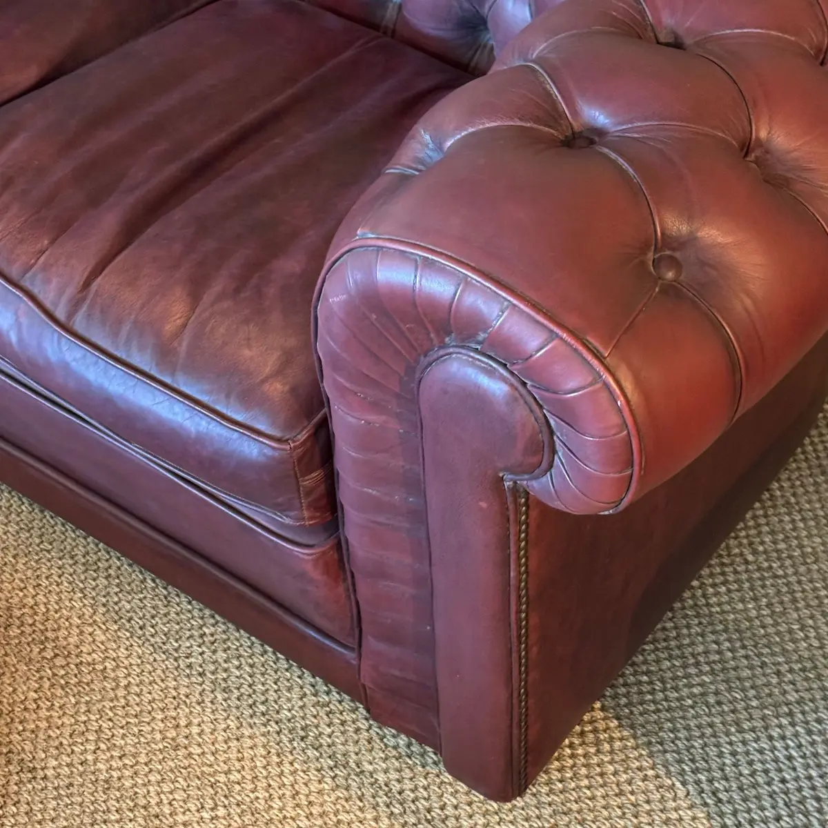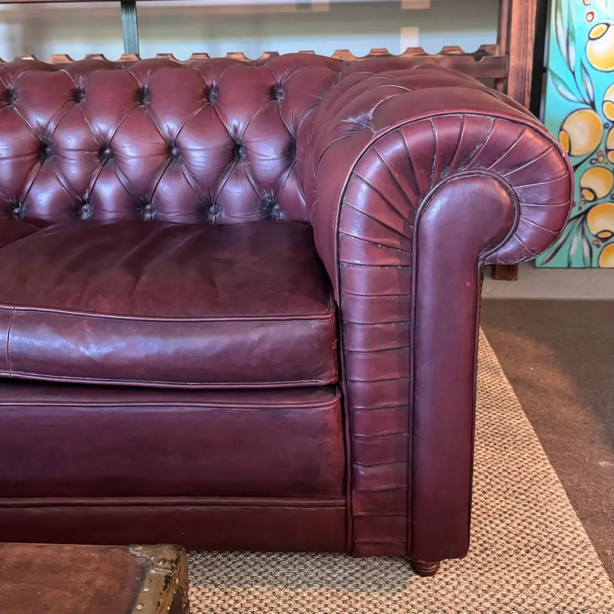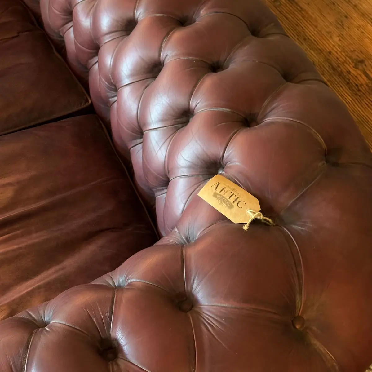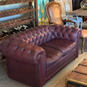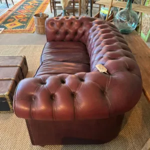 El Chester rojo vino es un sofá que no pasa desapercibido. Confeccionado artesanalmente en piel de primera calidad, su capitoné profundo y sus brazos enrollados evocan el refinamiento inglés más clásico.