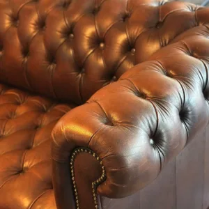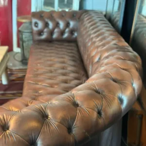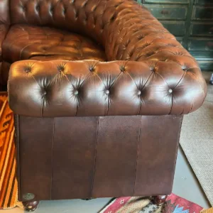 El sofá Chesterfield es un emblema de la elegancia británica que trasciende modas y épocas. Nuestro modelo esquinero marrón recupera toda esa tradición con un diseño de gran formato que se adapta perfectamente a espacios amplios y acogedores. Su tapizado en piel marrón de alta calidad, trabajado a mano, destaca por el clásico capitoné profundo que recorre tanto el respaldo como los brazos redondeados, mientras los remaches metálicos añaden un toque refinado y robusto. Cada costura refleja el saber hacer artesanal y la nobleza de los materiales. Con su estructura envolvente, invita al descanso y a la conversación, convirtiéndose en el centro indiscutible de salones sofisticados, bibliotecas privadas o espacios con alma vintage. Más que un sofá, este Chesterfield es una declaración de estilo, confort y exclusividad.