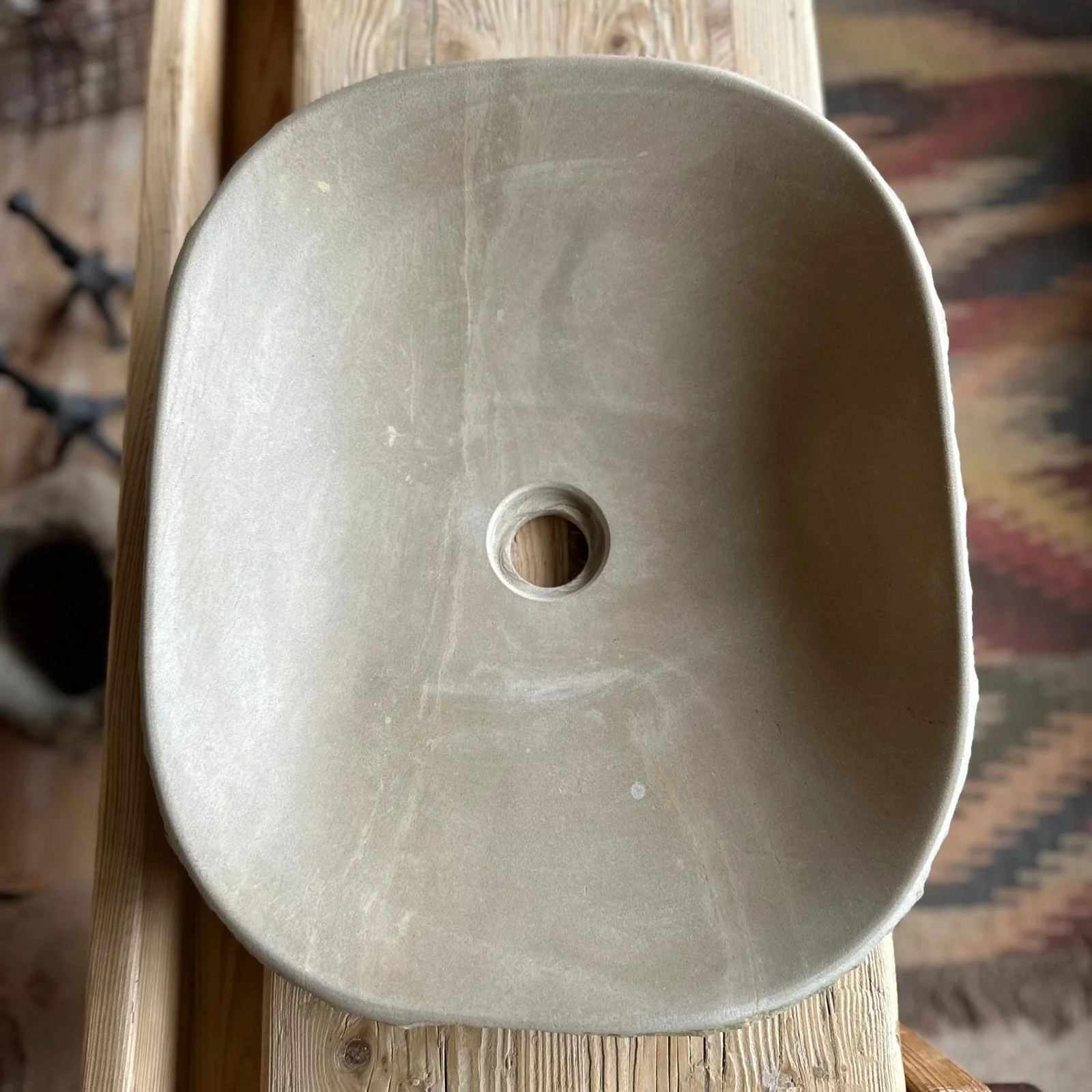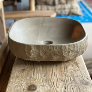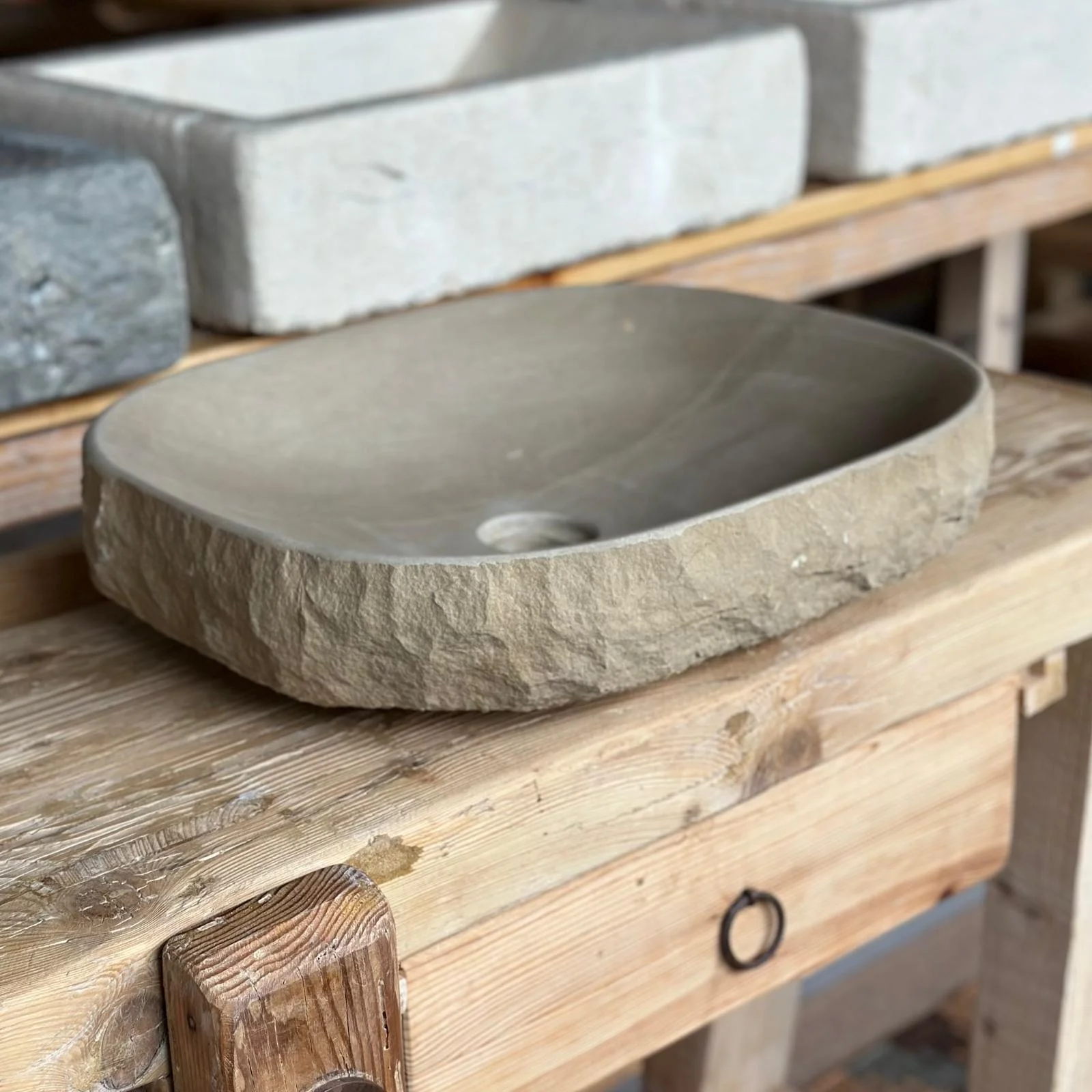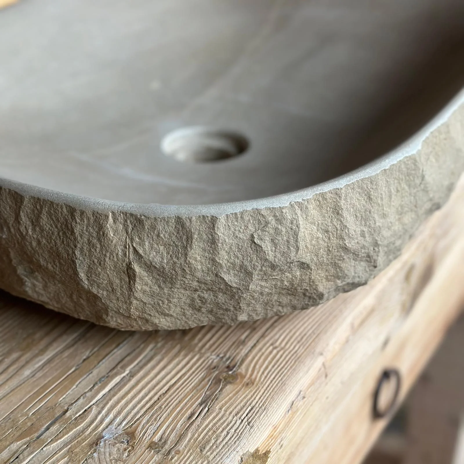 Sutil y armoniosa, «Terra Fina» está tallada a mano en piedra natural de Vinaixa. Su tamaño compacto y su forma ovalada la convierten en la opción perfecta para baños con espacio reducido que no renuncian al diseño y a la autenticidad.