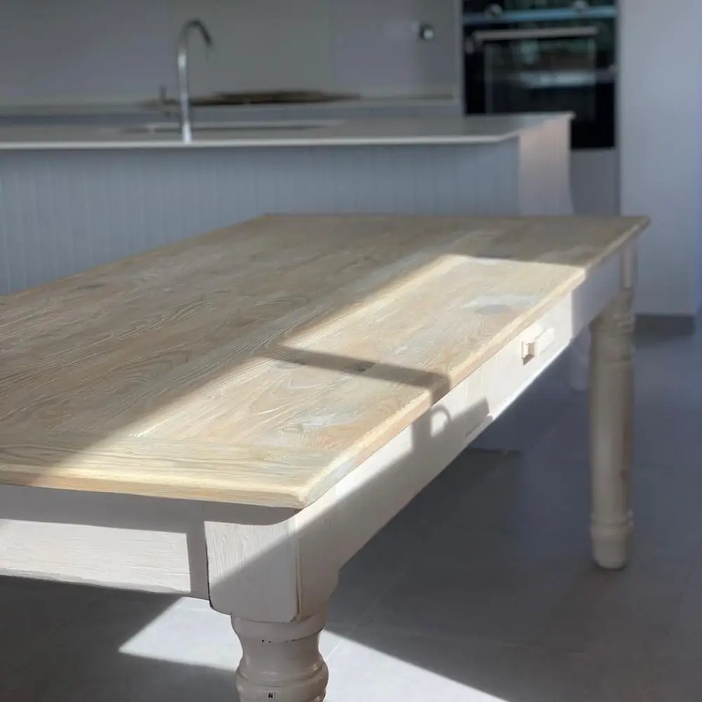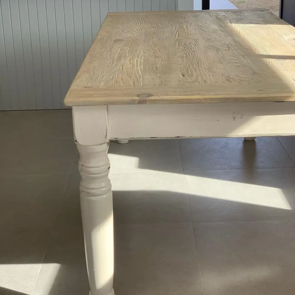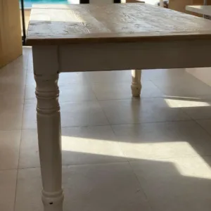 Fabricada artesanalmente, cada mesa es única gracias a las vetas, marcas y matices propios del pino recuperado. Una elección perfecta para quienes buscan una mesa atemporal, con estilo clásico y esencia de costa.